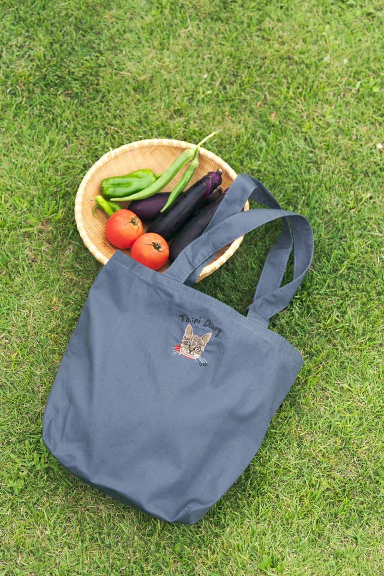 バッグの素材は、こだわり抜いたオーガニックコットンのリサイクル生地。